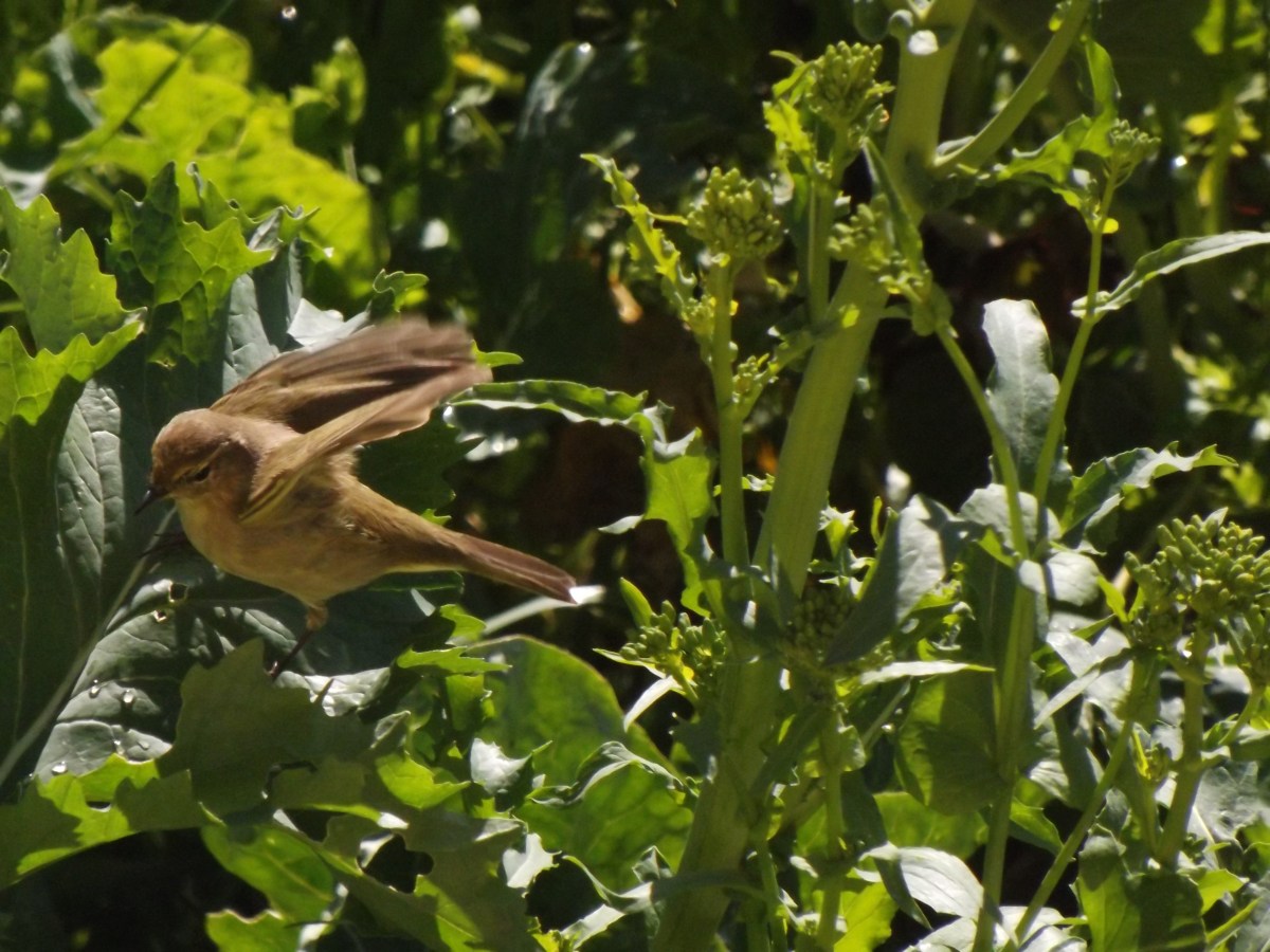 A felosinha a alimentar-se numa horta.