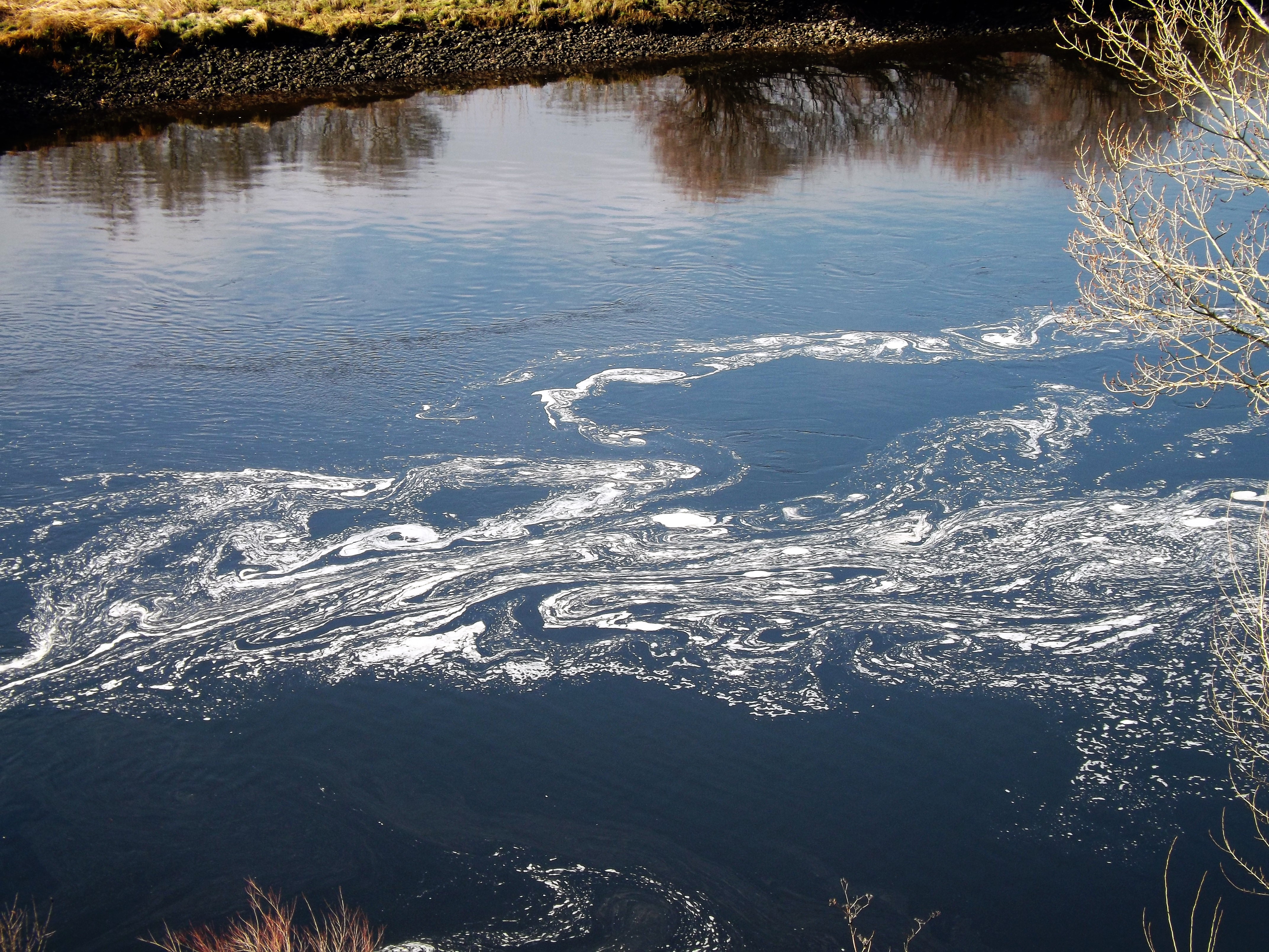 Após abrirem as comportas começou a surgir espuma e sujidade na água.