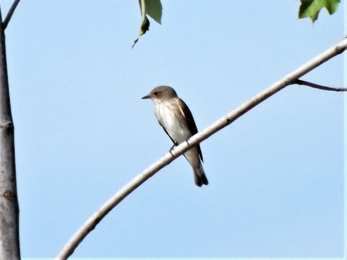 No alto de uma árvore um papa-moscas-cinzento “Muscicapa striata” está à espreita. Esta pequena ave apenas é avistada por cá quando em migração.