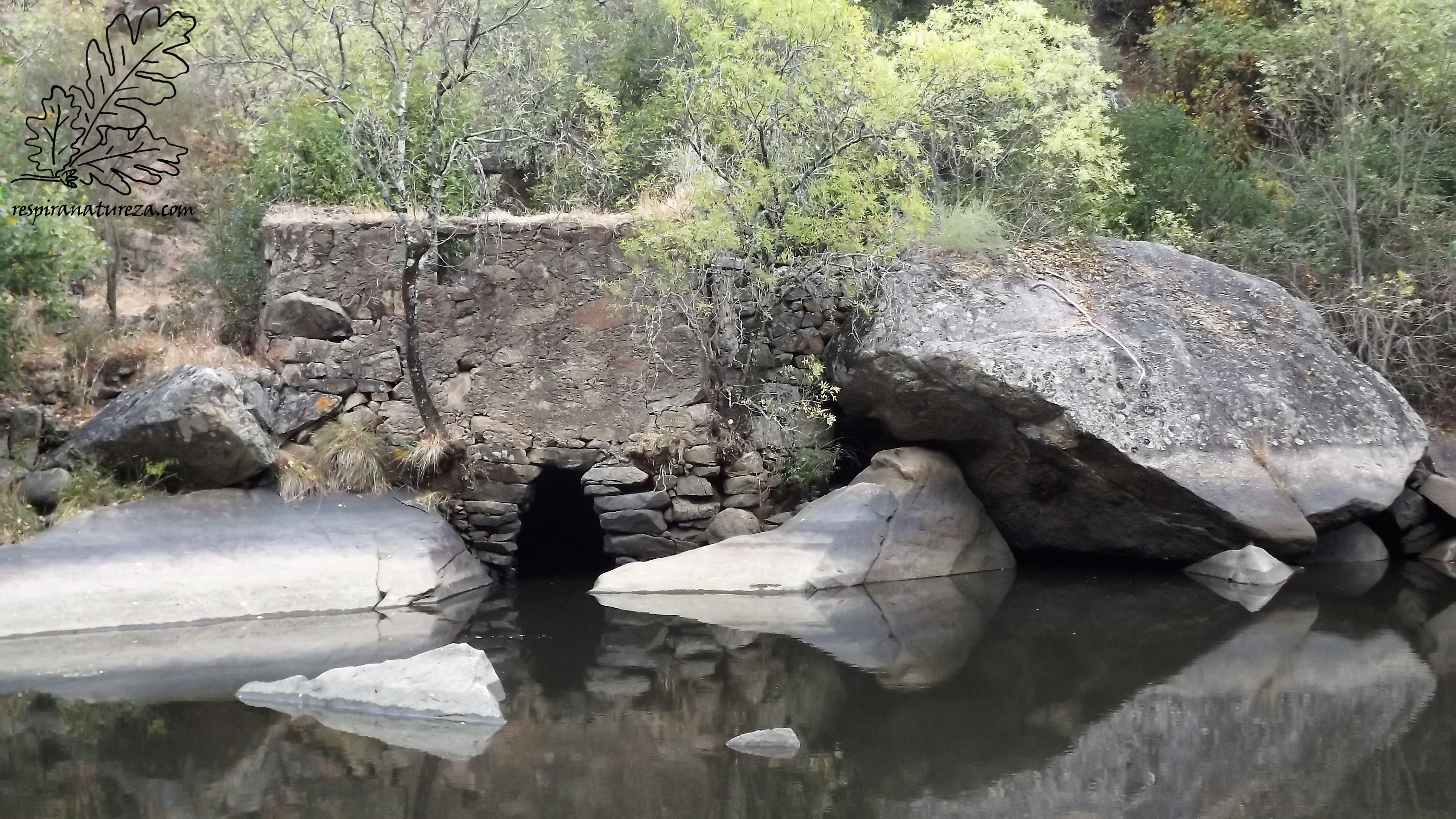 Quando a cota da barragem está no máximo a cave desta azenha fica submersa, ora reparem na marca da água na rocha no lado direito.