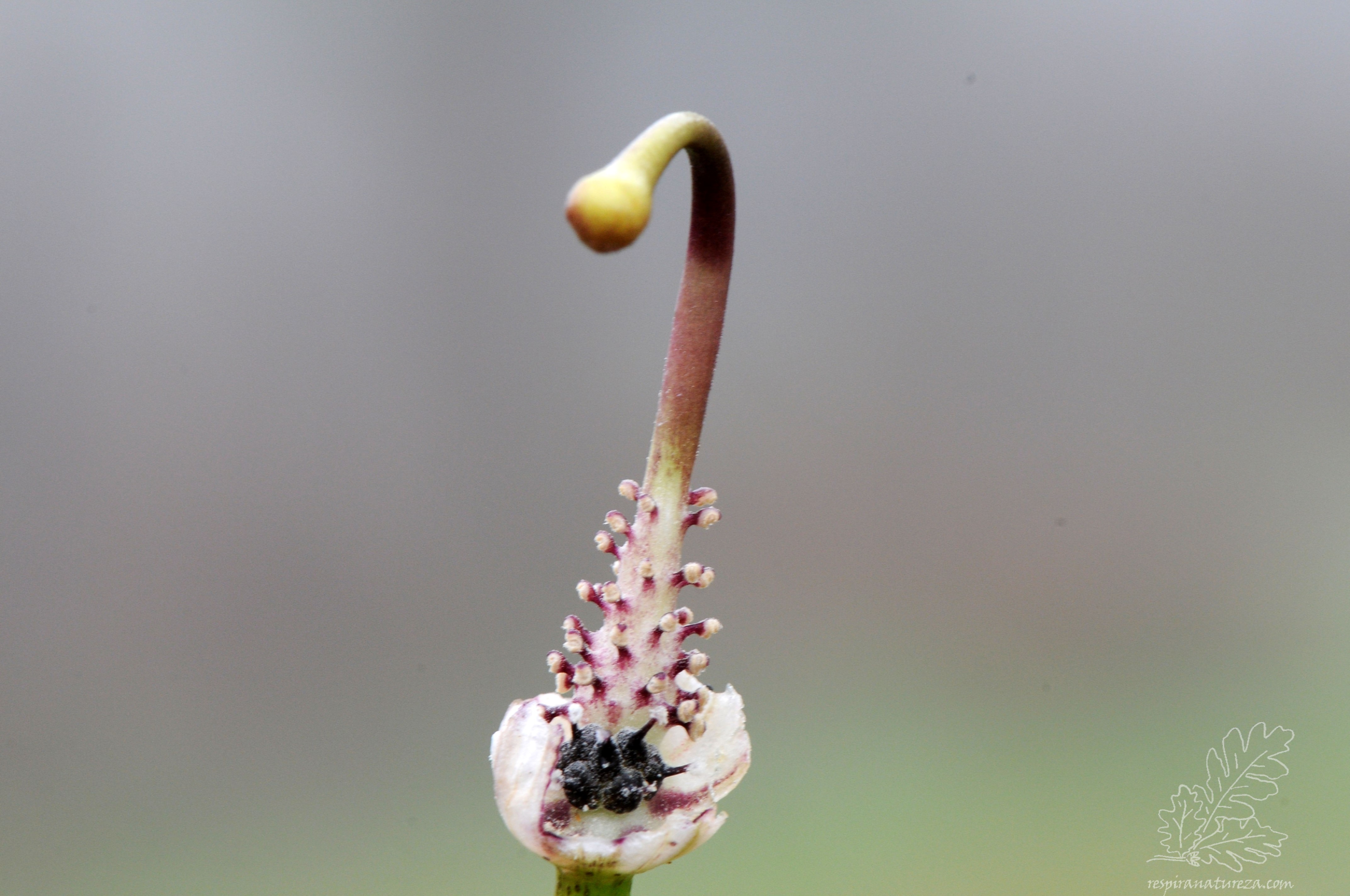 Retirada a bráctea, vemos pequenas as “flores”.