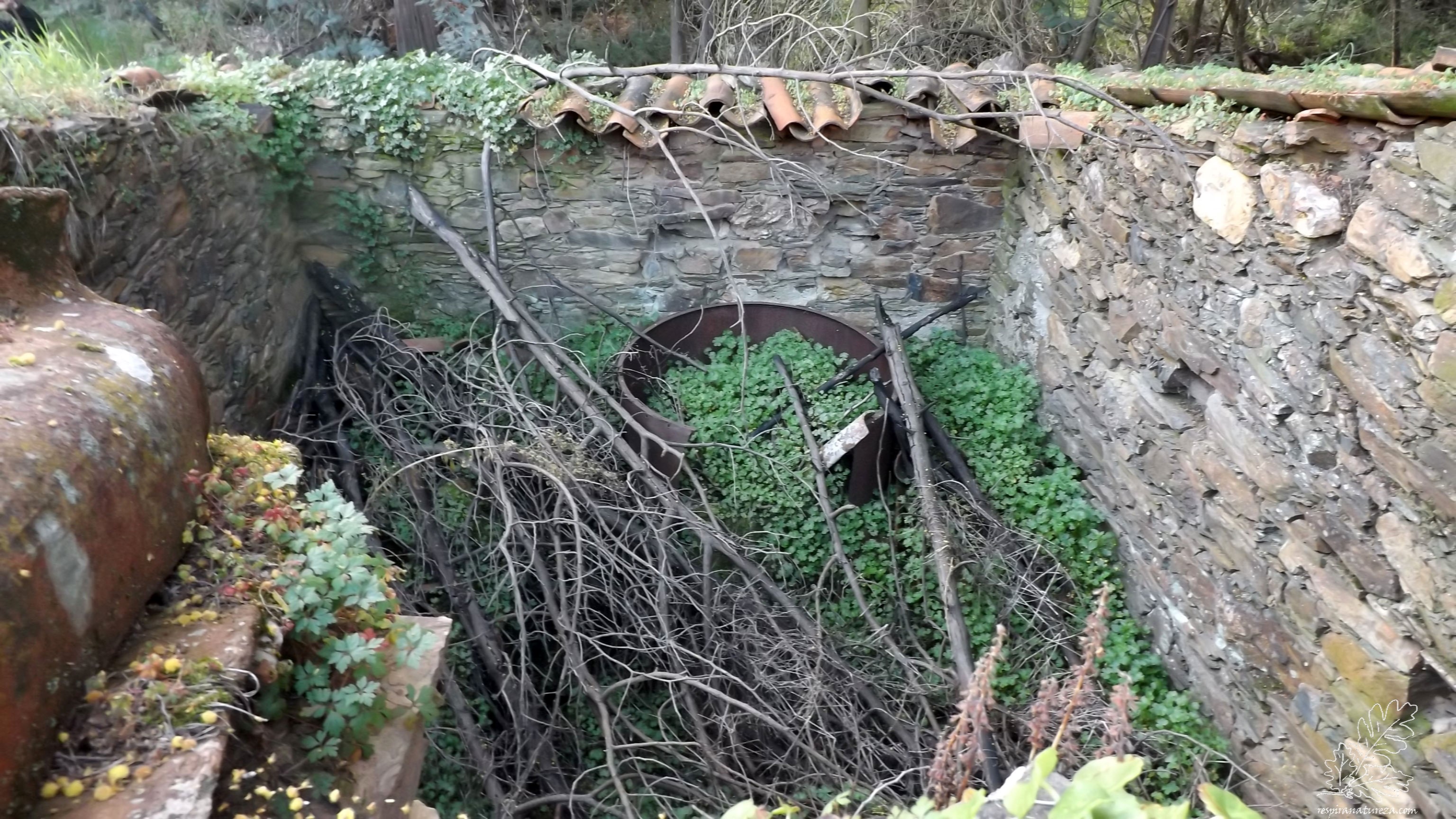 Aspecto do interior do moinho em ruínas.
