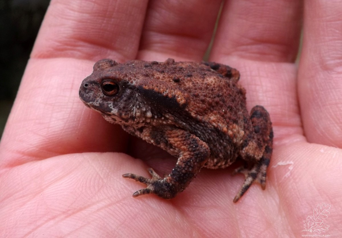 Pelo meio da vegetação algo se movimenta. É um sapo-comum, este ainda é juvenil, quando adulto pode chegar a medir cerca de 15 cm.