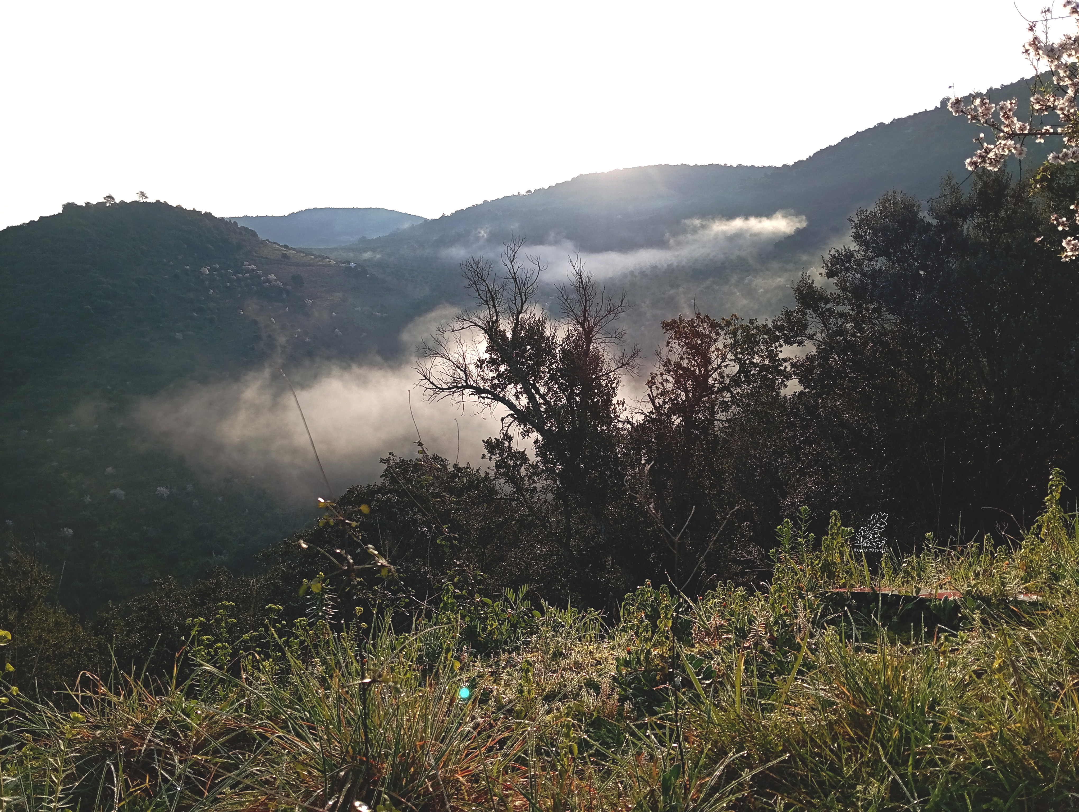 Ao descer em direção ao rio a neblina ia tentando tapar os raios de sol matinais. Por entre o arvoredo já se notavam algumas amendoeiras em flor, não esqueçam a Feira da Amendoeira em Flor está perto é já no próximo fim de semana na Vila de Mogadouro (1/2/3 de março).