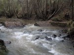 - Neste local da ribeira a água corre com força, nas margens vemos amieiros.